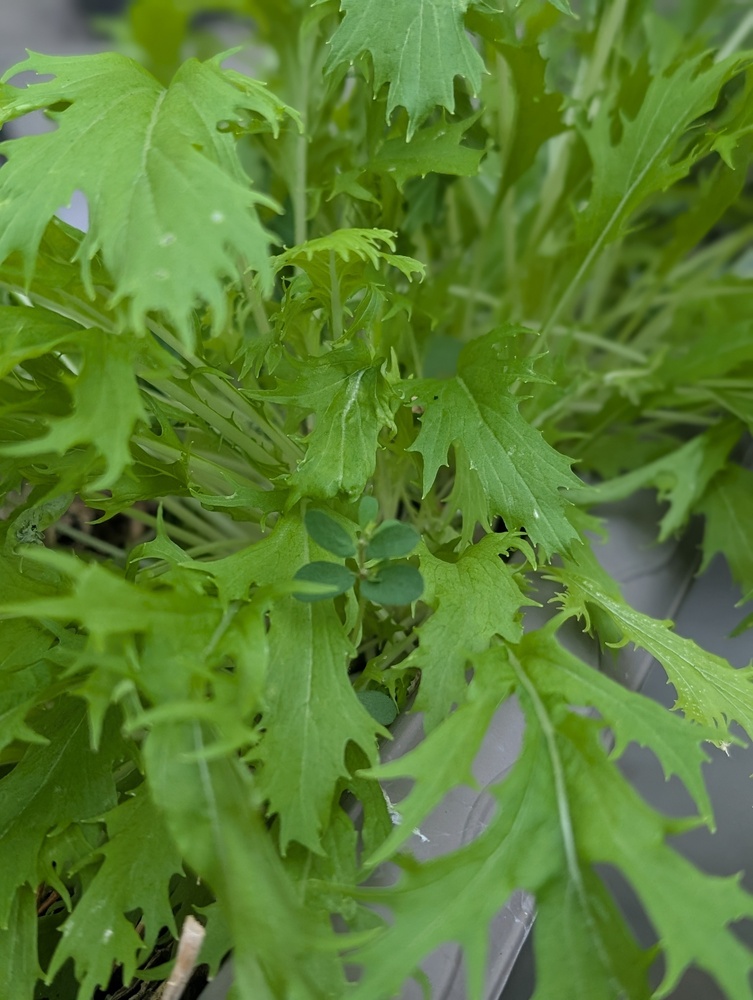 冬の水菜は、しゃきっと気持ちいい歯ざわり。 お鍋の仕上げにそっと入れていただくと、 湯気の中で冬の香りがふわりと立ちますえ。 鍋専用しゅうまいとご一緒なら、なおご機嫌どす。