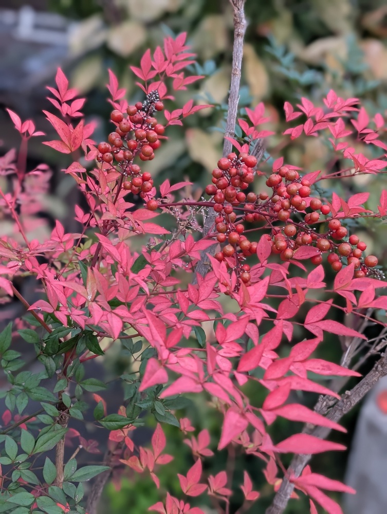 冬の庭の片すみに、赤い実をつけた南天が静かに揺れています。